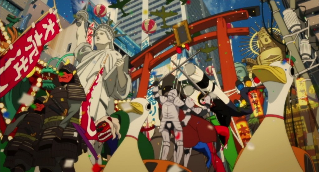 결말부에는 감독의 전작 퍼펙트 블루, 천년여우, 도쿄 갓파더즈의 간판이 이스터 에그로 등장합니다.